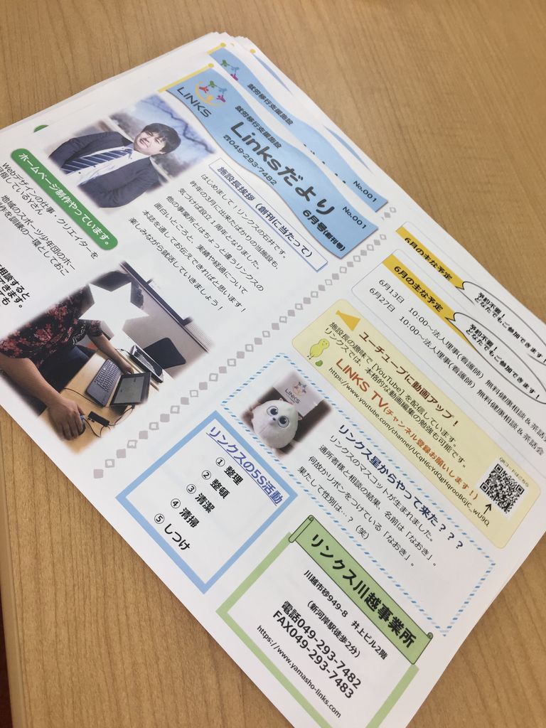 あと、以前紹介した「Linksだより6月号」が届きましたので、