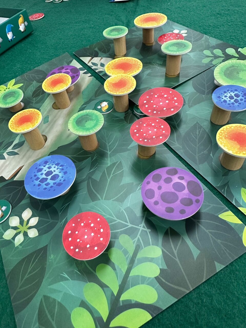 「マッシュ・スマッシュ」小人たちがキノコを収穫し、建物を建てる。