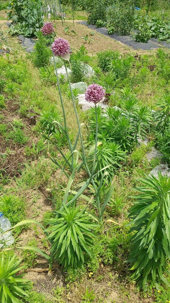 ニンニクって紫の花を咲かせるんだね