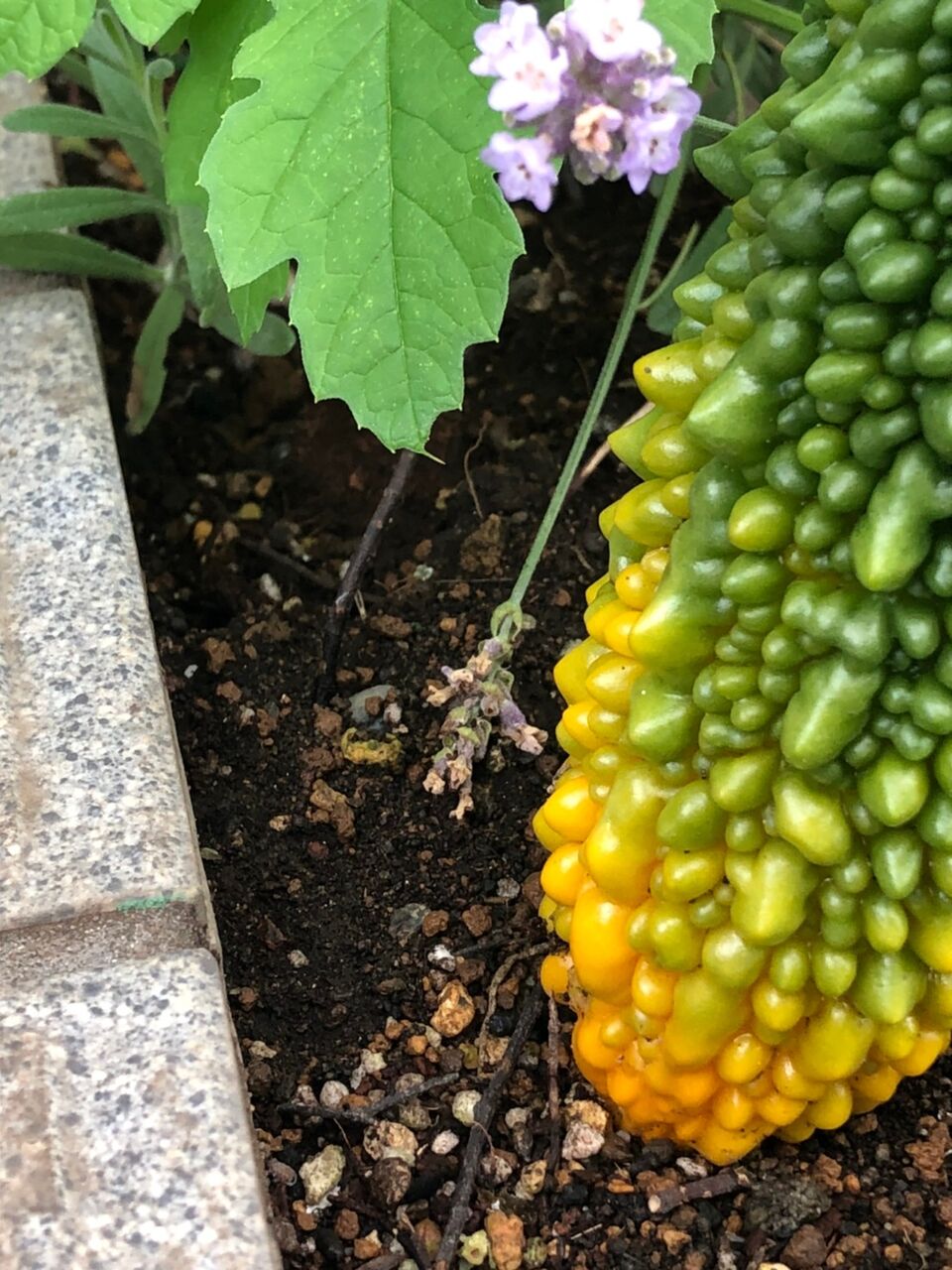 にがにがの実、上弦の1下弦の1とも小さいまま黄色くなってしまったので今朝収穫いたしました。