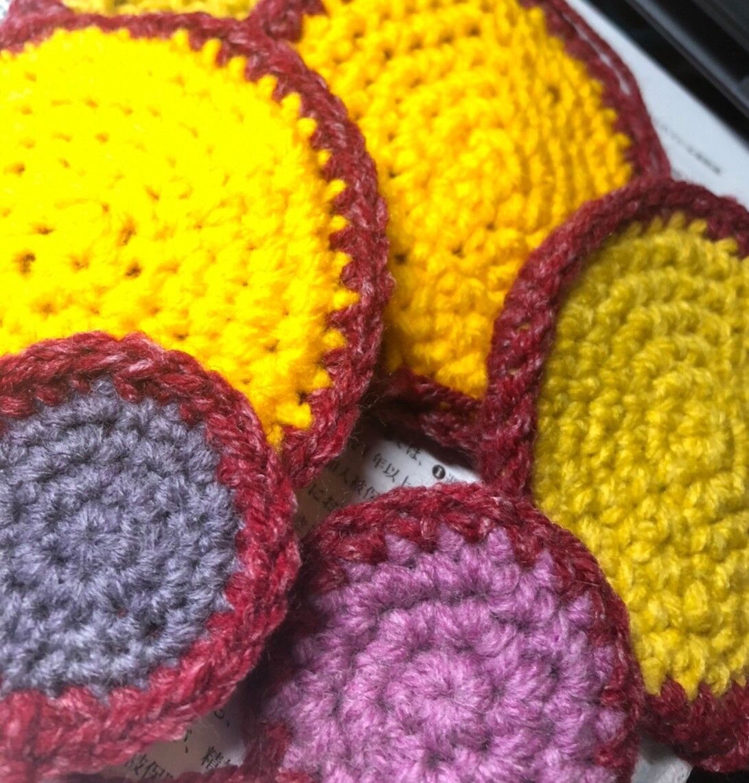 ハンドメイド部は細編みのアクリルたわしから更にレベルアップした「細編みの円」にトライしていました。