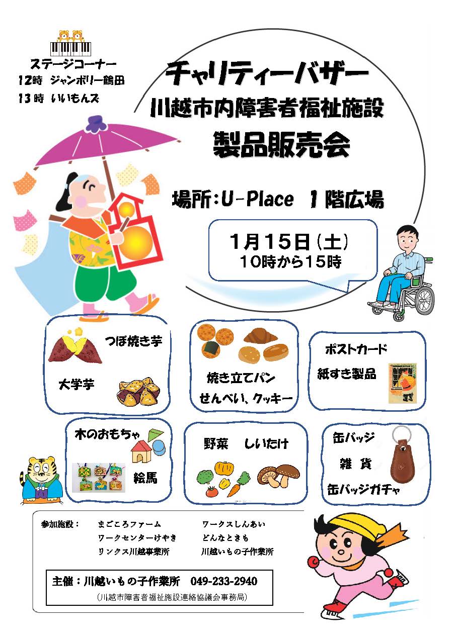 あしたは川越U_PLACEで「いもの子チャリティバザー」があります!!