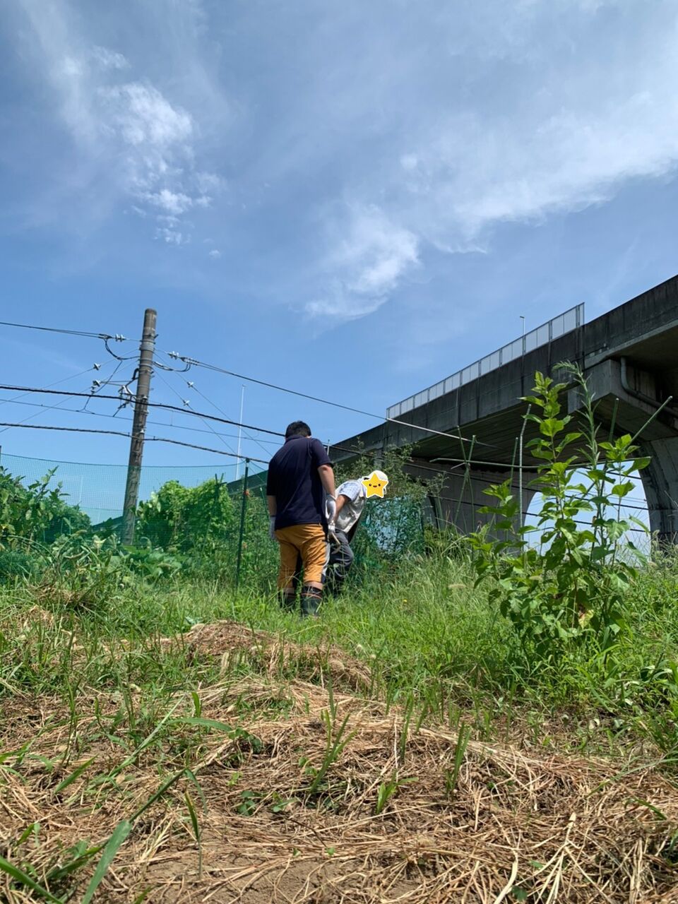 最近は雨が降ったり、何かと用事があったりで、農作業が出来ていなかったので予想はされていた事態ではありました。しかし、目の当たりにすると雑草の生命力には脅威を感じざるを得ません。来年には川越は雑草に沈むこと必至。雑草が日本全土を覆うのも時間の問題だろうと予想されました。そこで、リンクスのメンバーで除草に励むことにしました。灼熱の太陽の下ですが、日本のためなので仕方がありません。