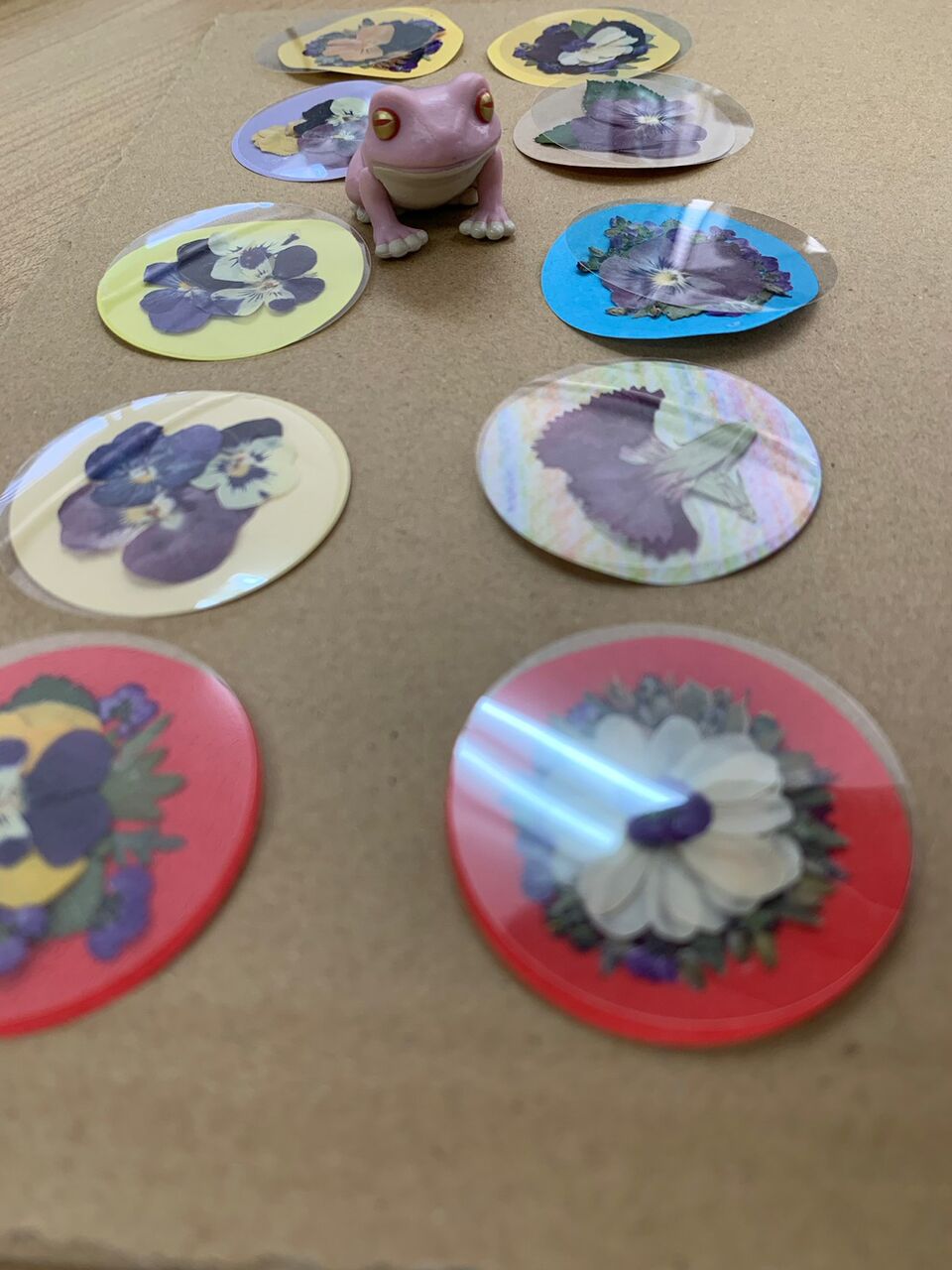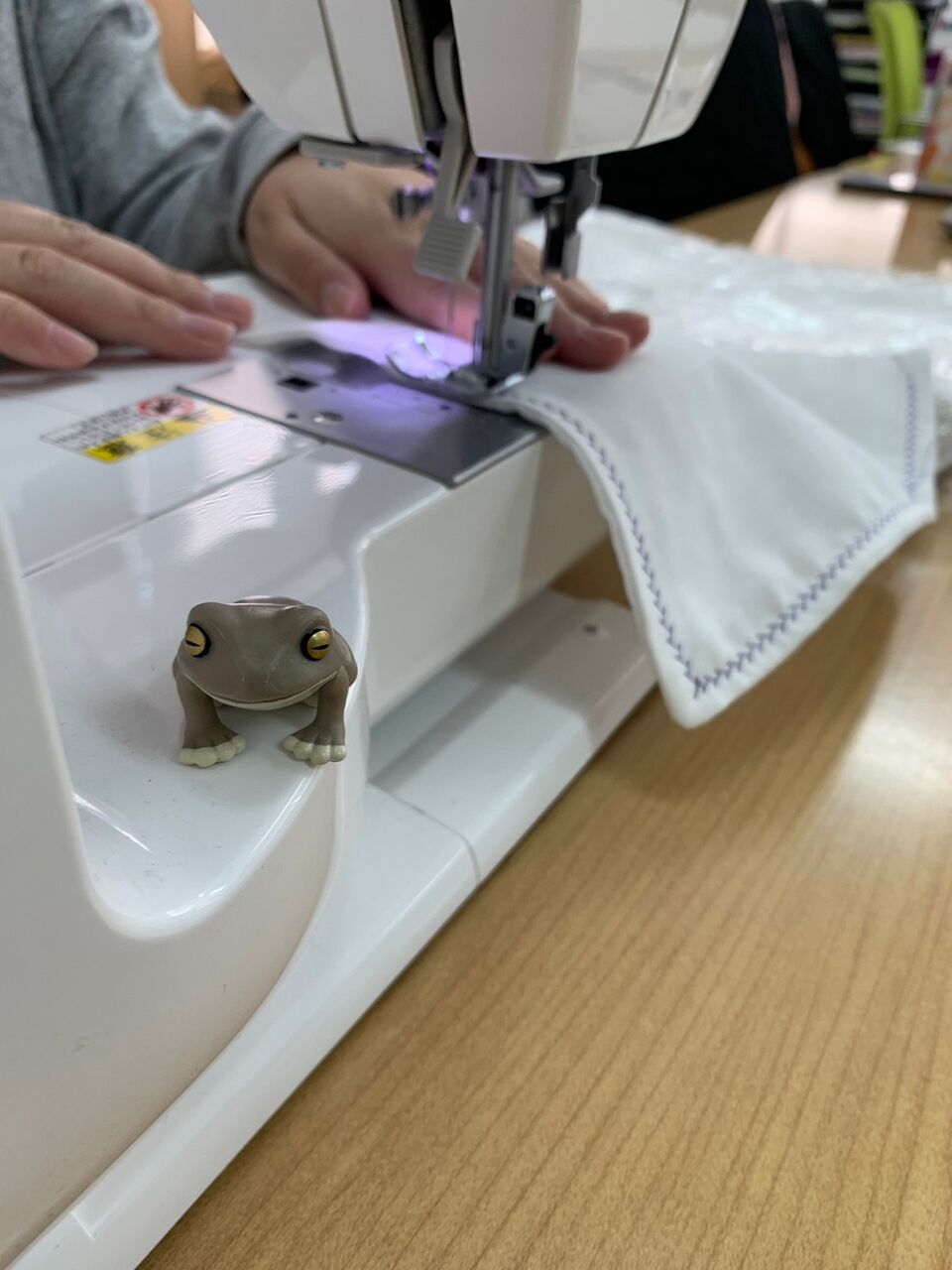 カエルB「本物の花ですよ」 カエルA「ミシン・・・恐るべし」