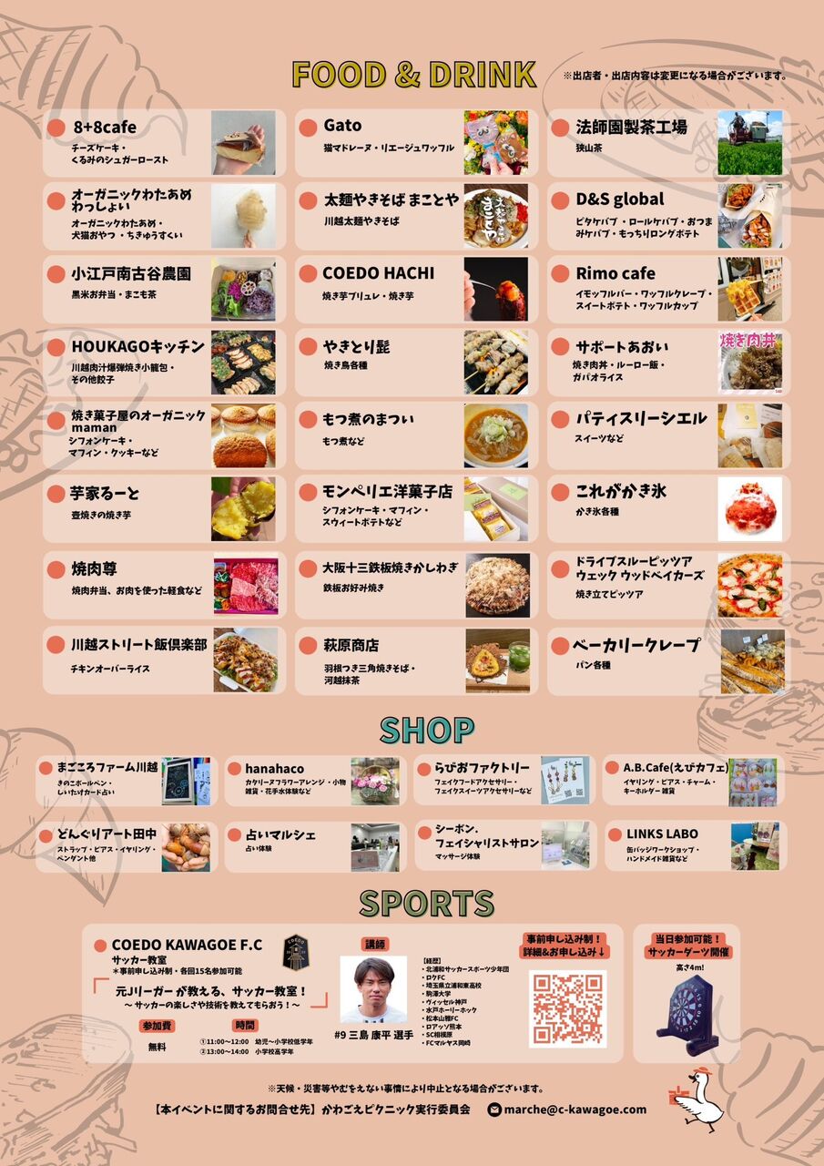前回、雨で中止になった「かわごえピクニック」、私のせいではない。今週末に開催予定だ。リンクスも物販で参加する。川越にちなんだ缶バッジや、リンクスのメンバーが作った編み物や、マスクをアップサイクルした布巾といった小物も販売予定だ。お子さんに人気な自分の好きなデザインで缶バッジが作れる「缶バッジワークショップ」。ペットの写真や記念写真、好きな画像から缶バッジが作れたりと、楽しめること請け合いなのだが、予報では雨の可能性もある。私のせいではない。